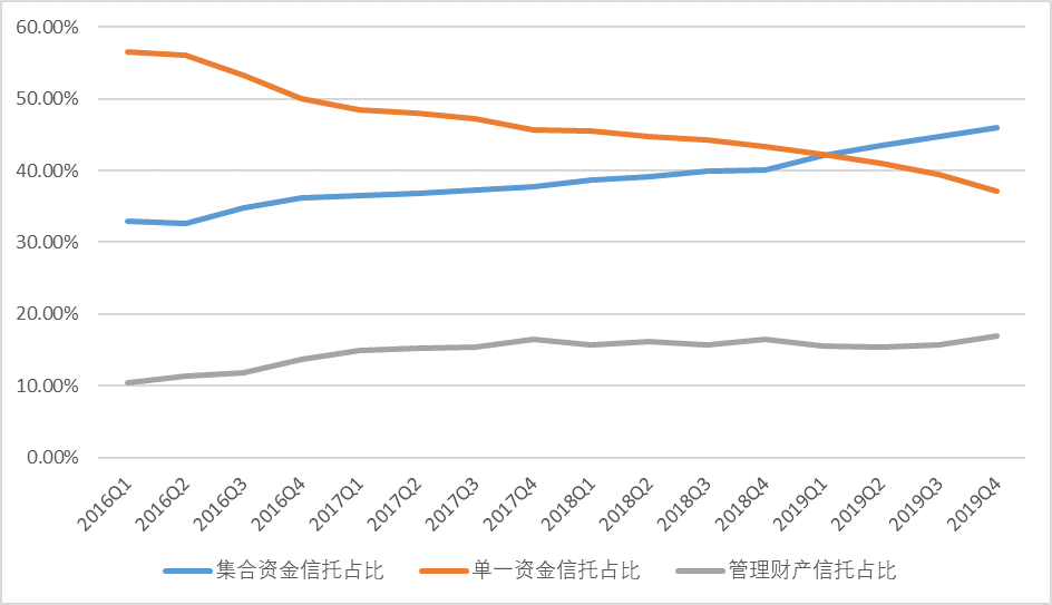 图2 2016Q1-2019Q4信托资产按来源分类趋势图