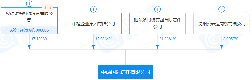 其中经纬纺织机械股份有限公司(以下简称“经纬纺机”)持股37.47%,中植企业集团有限公司(以下简称“中植集团”)持股32.99%,哈尔滨投资集团有限责任公司(以下简称“哈尔滨投资”)持股21.53%以及沈阳安泰达商贸有限公司(以下简称“安泰达商贸”)持股8.01%。